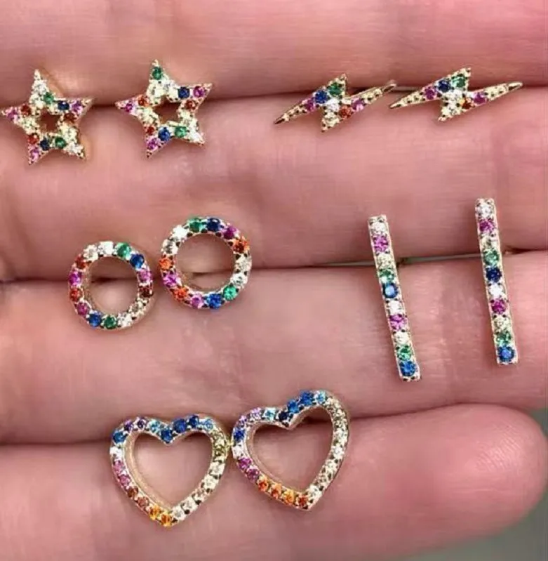 2020 Super Shiny Fashion Rainbow Earrings Rose Gold Color Micro