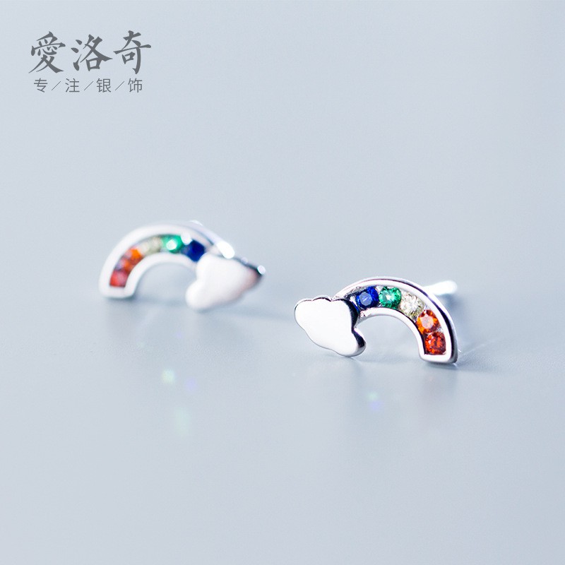 S925 Silver Rainbow Earrings Female Diamonds Sweet Cloud Earrings