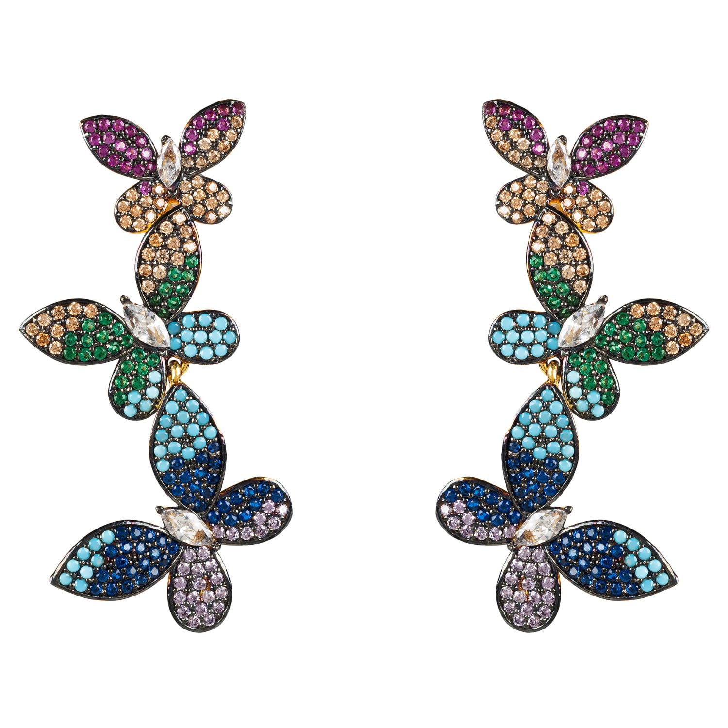 Multi Gemstone Rainbow Earrings Long Gemstone Cluster Earrings In