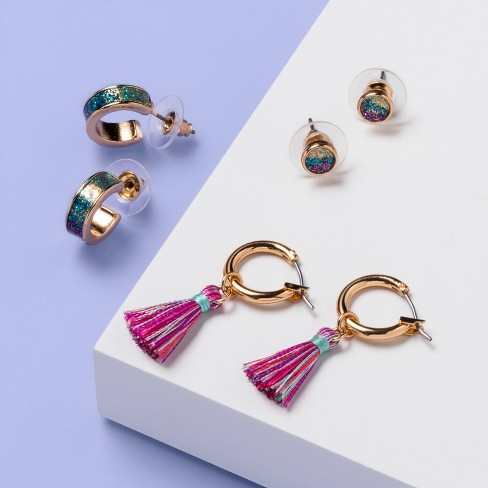 Girls 3pk Rainbow Earrings With Tassel Set More Than Magic