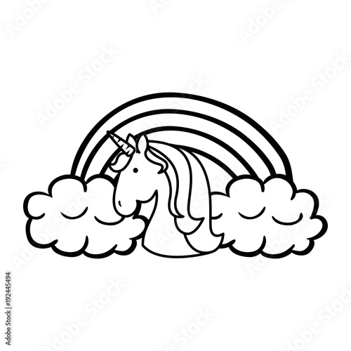 Beautiful Unicorn On A Rainbow Black And White Image Vector