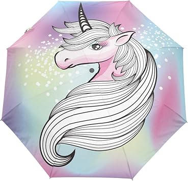 Amazon Com Umbrella Auto Open Close Rainbow Fantasy Cute Unicorn