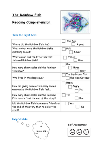 The Rainbow Fish Reading Comprehension Teaching Resources