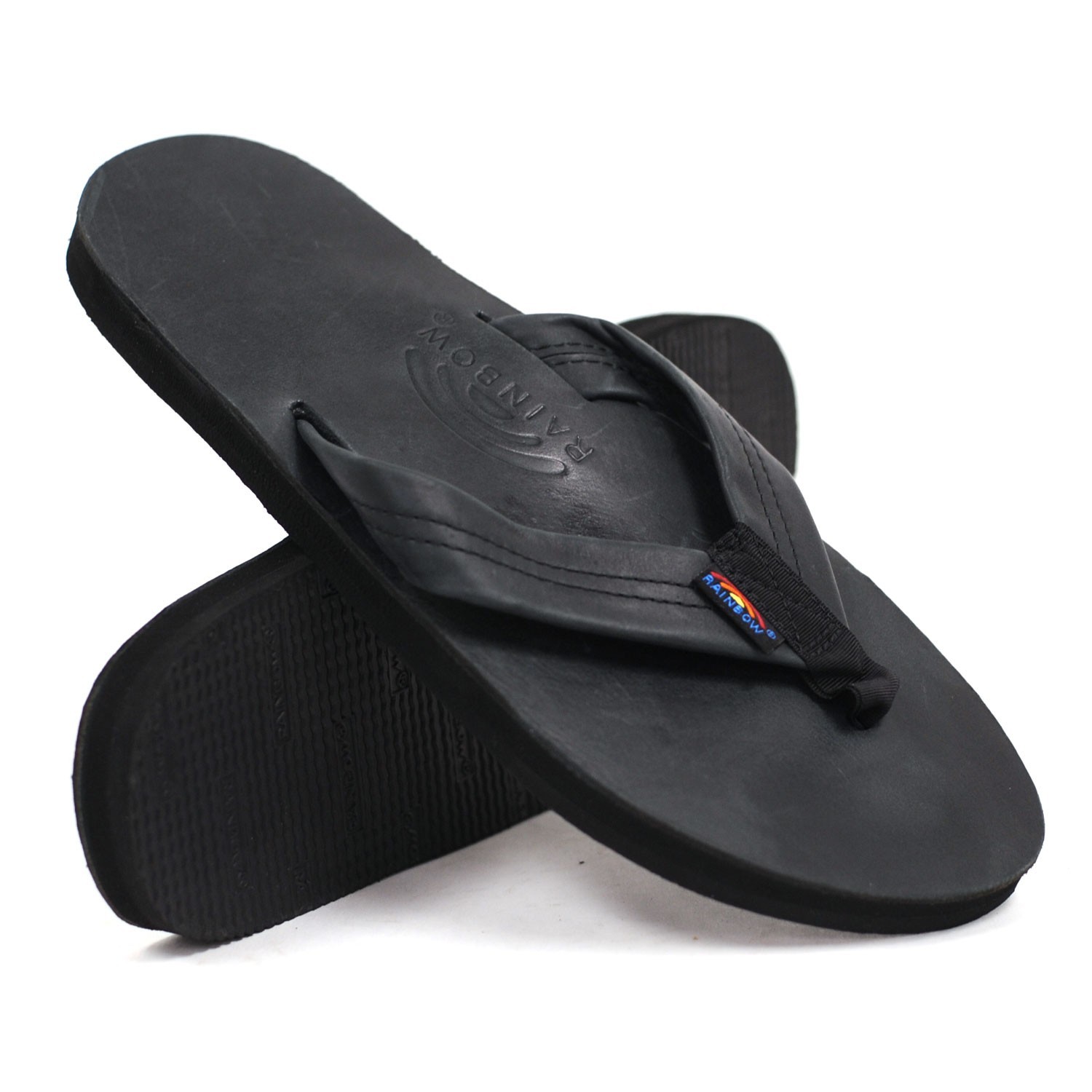 Rainbow Sandals Men Classic Black Leather Single Layer Pee Dee