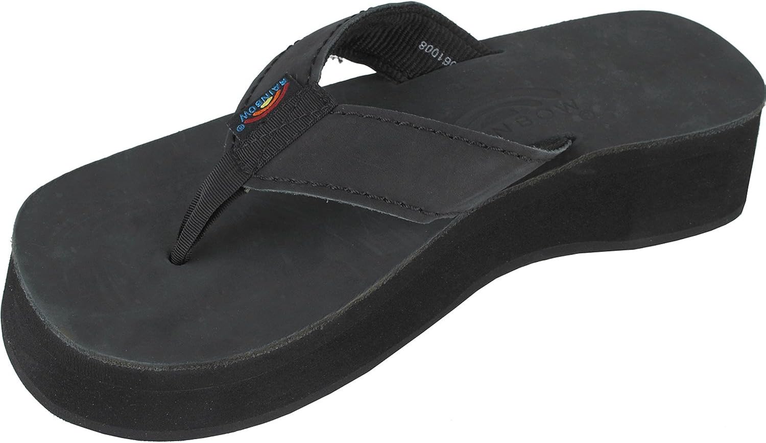 Rainbow Sandals Black Women Wedge Leather Platform Thong Flip