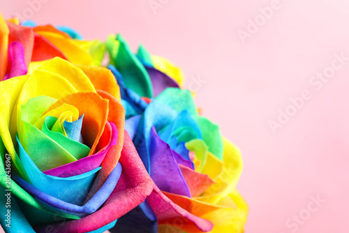 Amazing Rainbow Rose Flowers On Color Background Buy This Stock