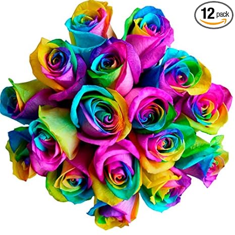 Amazon Com 100 Real Fresh Cut Rainbow Rose Fresh Flower