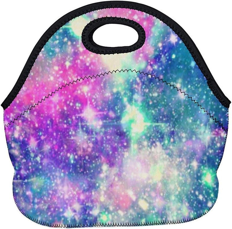 Amazon Com Insulated Neoprene Lunch Bag Rainbow Galaxy Sparkle Stars Watercolor Tote Handbag Lunchbox Food Container For Kids Adults Kitchen Dining