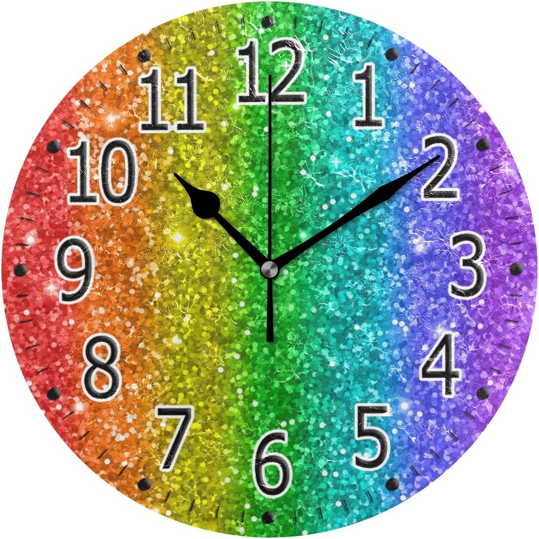 Amazon Com Unimagic Battery Operated Round Wall Clock Glitter Color Rainbow Galaxy 9 85 Inch Silent Clock For Office Living Room Kitchen Bathroom Home Kitchen