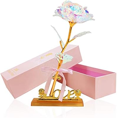 Amazon Com Kirifly Galaxy Rose Gifts Fake Roses Flowers Gold Eternal Rose Colorful Plastic Forever Flower Birthday Anniversary Engagement Gifts For Women Love Base Stand Home Kitchen