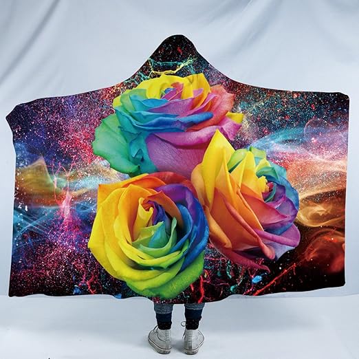 Amazon Com Sleepwish Rainbow Flower Design Hooded Blanket Psychedelic Galaxy Fleece Blanket Hippie Rose Sherpa Blanket Adults 60 X 80 Home Kitchen