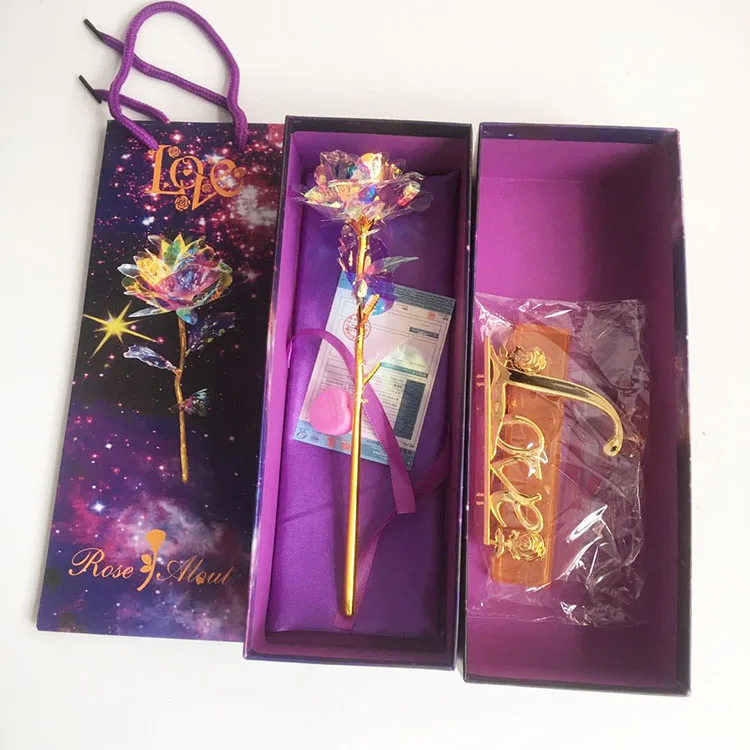 Valentine S Day Mother S Day Birthday Gift 24k Colorful Rose Artificial Flower Rainbow Galaxy Rose 24k Flower Buy High Quality Gold 24k Gold Rose 24k Colorful Rose Artificial Flower Rainbow Galaxy Rose 24k