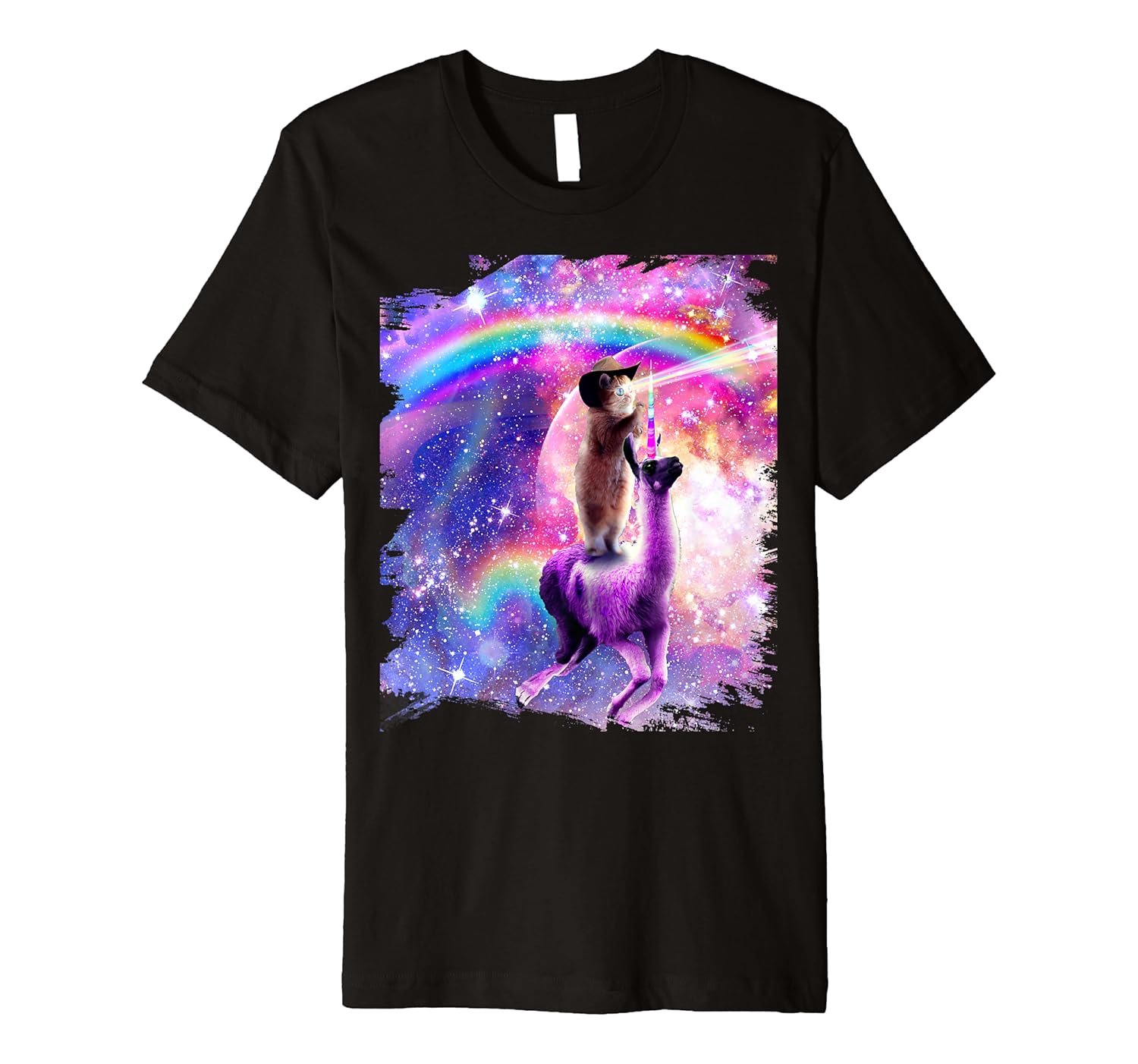 Amazon Com Laser Galaxy Space Cat On Rainbow Llama Unicorn