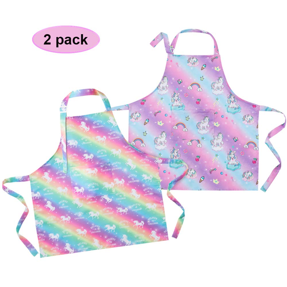 Sylfairy 2 Pack Aprons For Kids Girls Rainbow Galaxy Unicorn Apron
