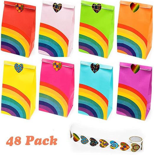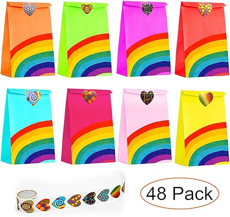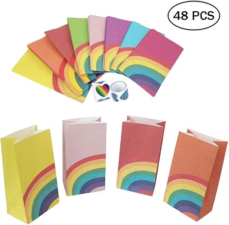 Amazon Com Whaline 48 Pack Rainbow Paper Bags Rainbow Party