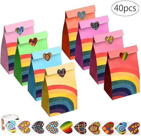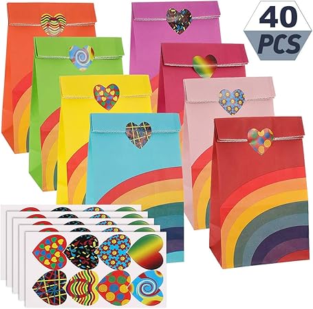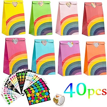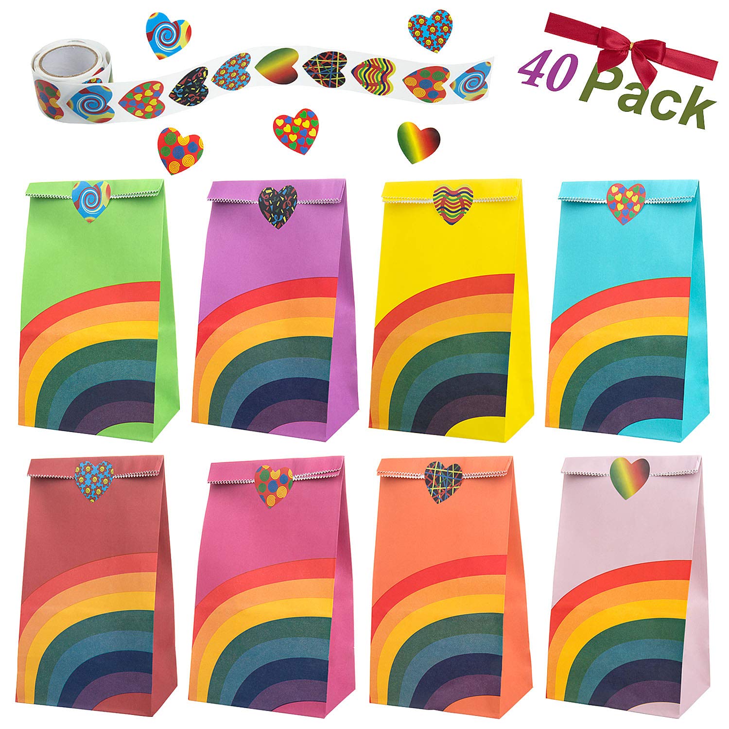 Decareta 40 Pcs Rainbow Party Bags With 1 Roll Of 100 Stickers