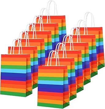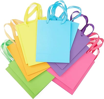 Amazon Com Rainbow Party Favor Paper Gift Bags With Ribbon