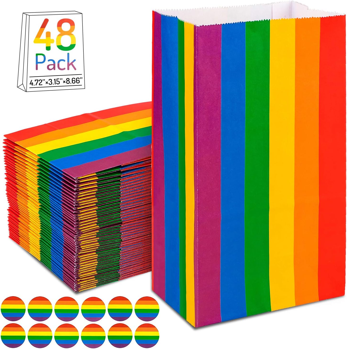 Amazon Com Fowecelt 48 Pieces Rainbow Party Bag Paper Gift Candy