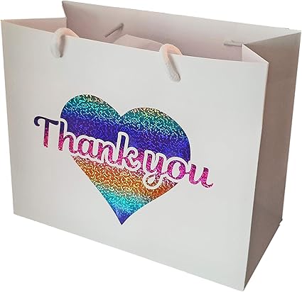 Thank You Rainbow Gift Bag Holographic Glitter Gift Bag With