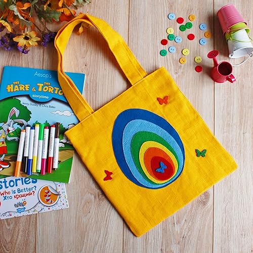 Amazon Com Easter Rainbow Egg Gift Bag Linen Favor Goodie Tote