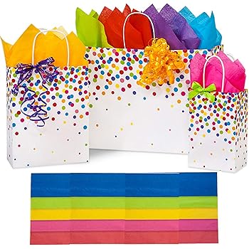 Amazon Com Birthday Gift Bags Rainbow Confetti Bow Design 3 Pack