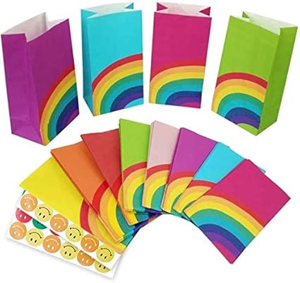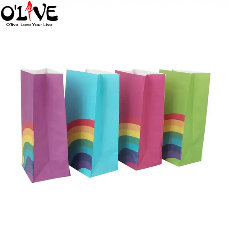 24 Kraft Paper Bags Rainbow Design Cookie Candy Packing Gift Bags