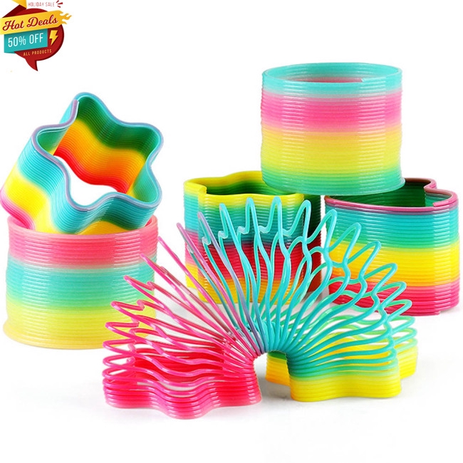 Children Kids Colorful Rainbow Color Plastic Spring Ring Magic