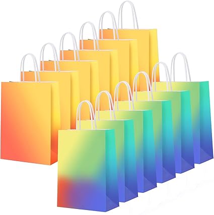 Uniqooo 12pcs Assorted Rainbow Gift Bag Bulk 9 X 7 X 4 Inch Small