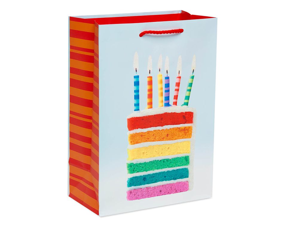 Rainbow Cake Slice And Candles Small Birthday Gift Bag American