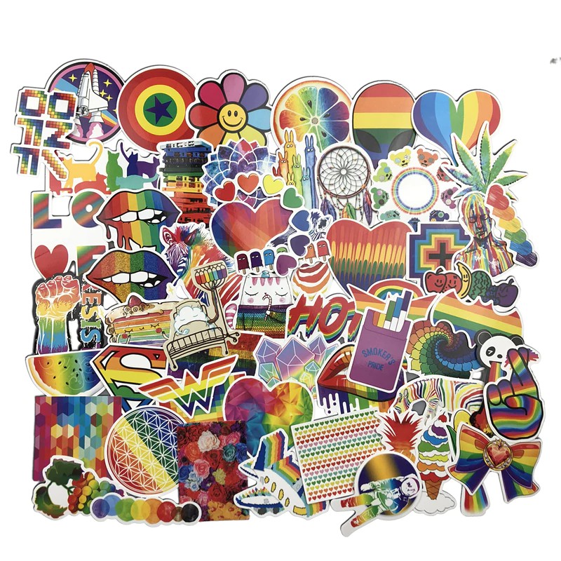Import 60 Pcs Rainbow Sticker Anime Icon Animal Cute Decals
