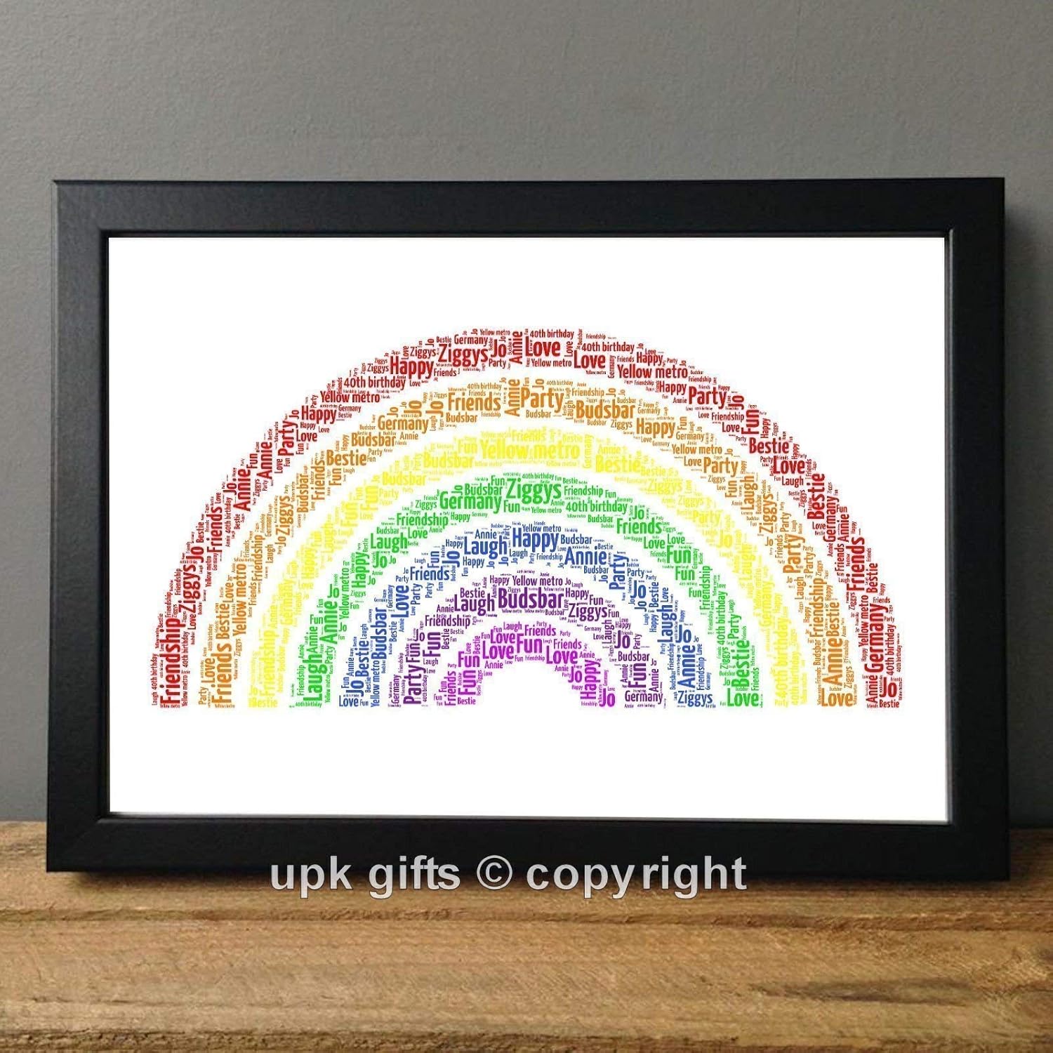 Upk Gifts Personalised Keepsake Rainbow Word Art With Frame