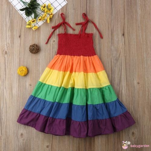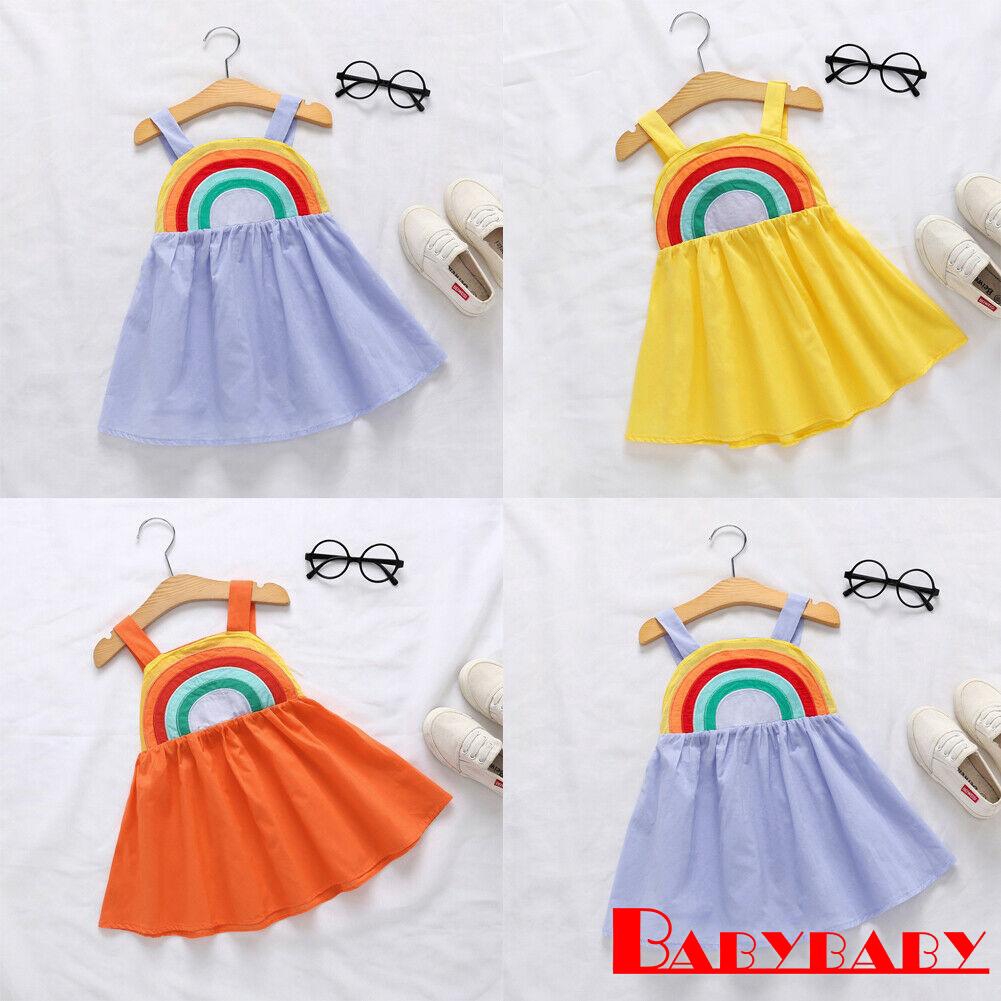 Summer Toddler Kids Baby Girls Clothes Sleeveless Rainbow Dress