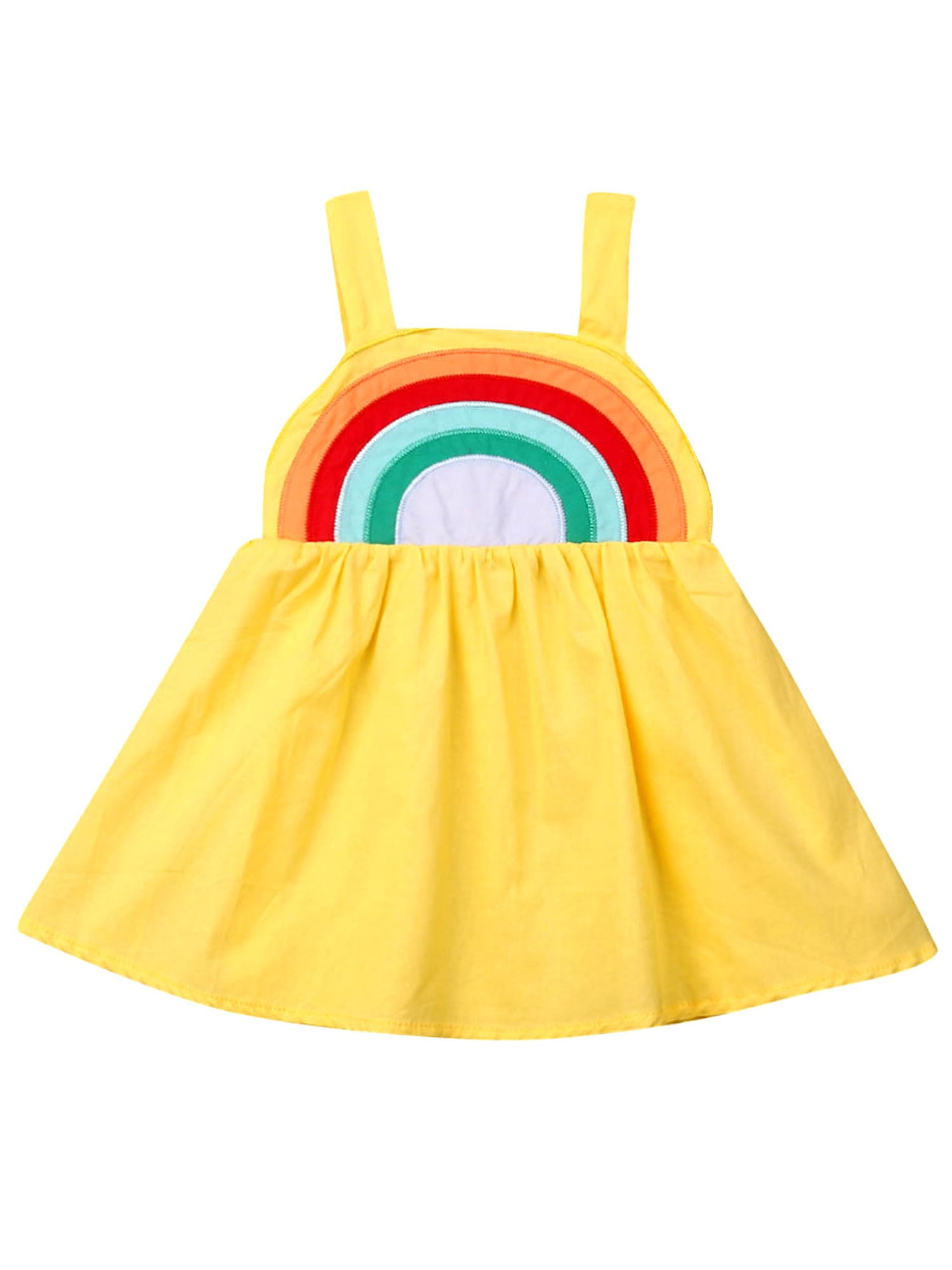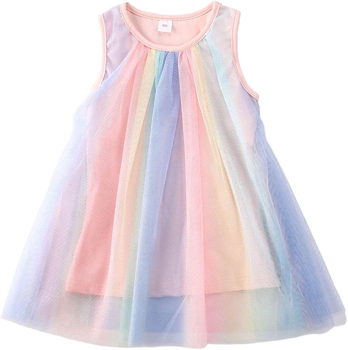 Honioer Summer Toddler Baby Girls Sleeveless Rainbow Print Dress