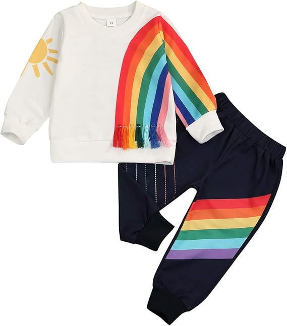 Baby Girls Clothes Rainbow Applique Girls Sets Kids Outfits Long