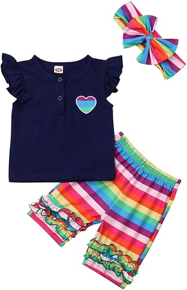 Girls Clothing Sets Ruffle Sleeveless Baby T Shirts Tops Rainbow