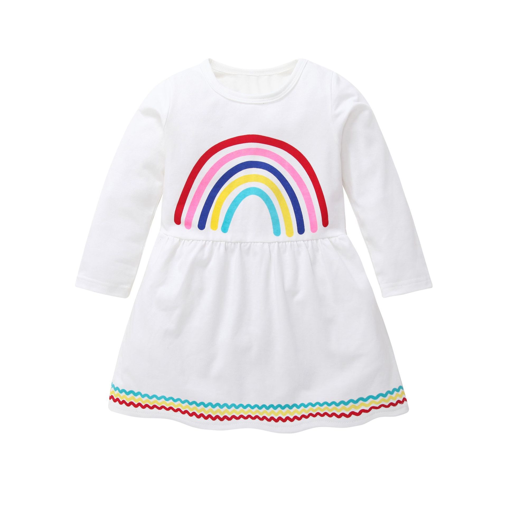 2020 Baby Rainbow Dress Kids Girls Clothes Long Sleeve Toddler