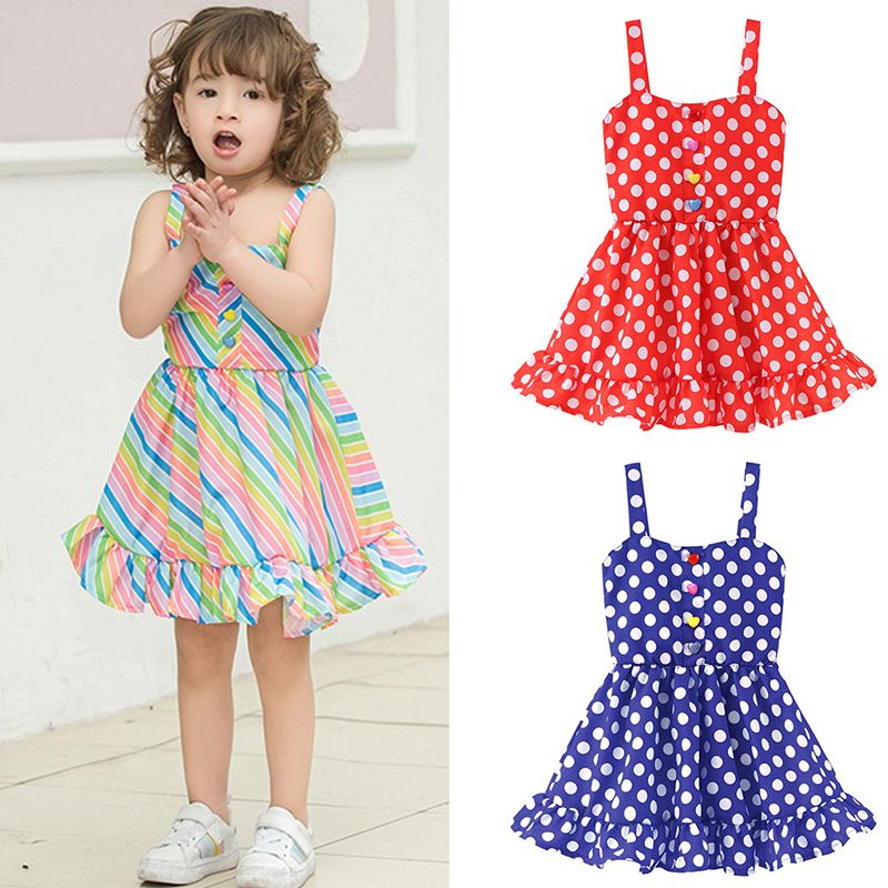 2020 Children Girls Clothes Baby Rainbow Stripe Dot Dress Kids