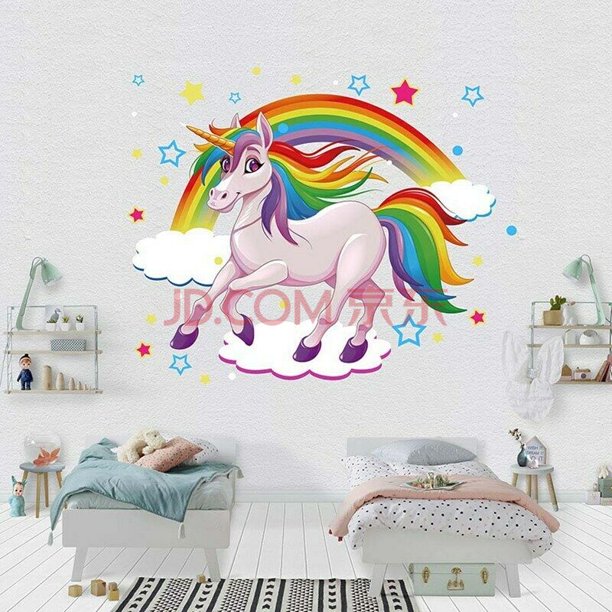 Pipi 1 Set Rainbow Unicorn Wall Sticker Girls Bedroom Wall Decal