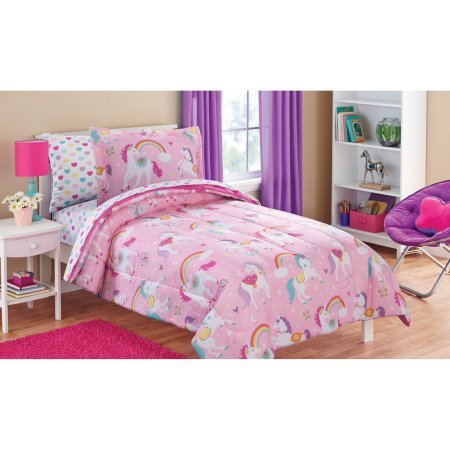 Amazon Com 6 Piece Girls Unicorn Rainbow Comforter Set Twin