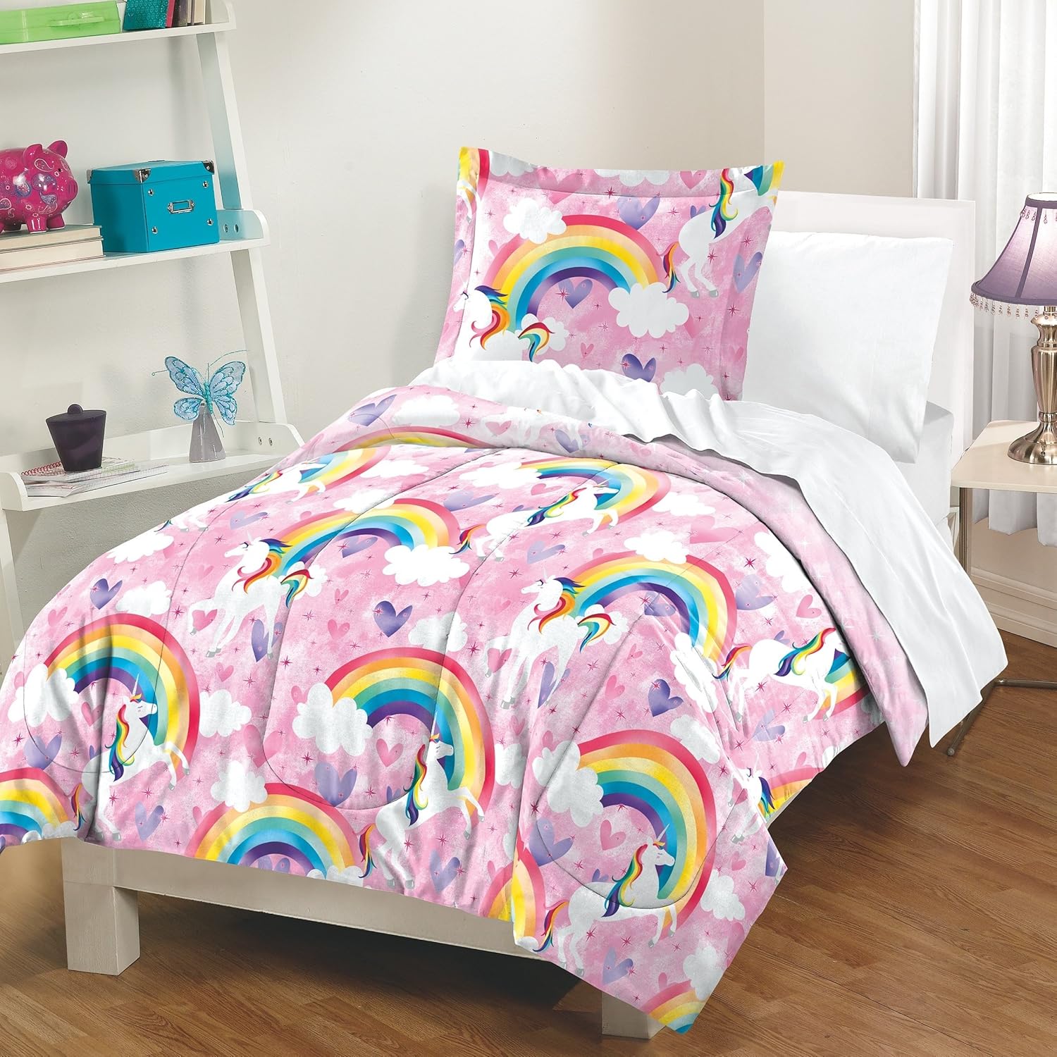 Girls Rainbow Unicorn Comforter Set Love Unicorns Heart Fun