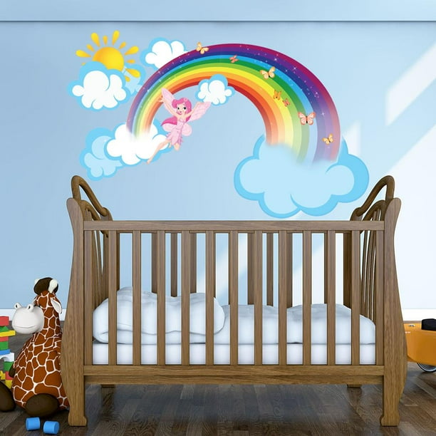 Rainbow Fairy Wall Decal With Clouds And Sun Girl S Room Wall