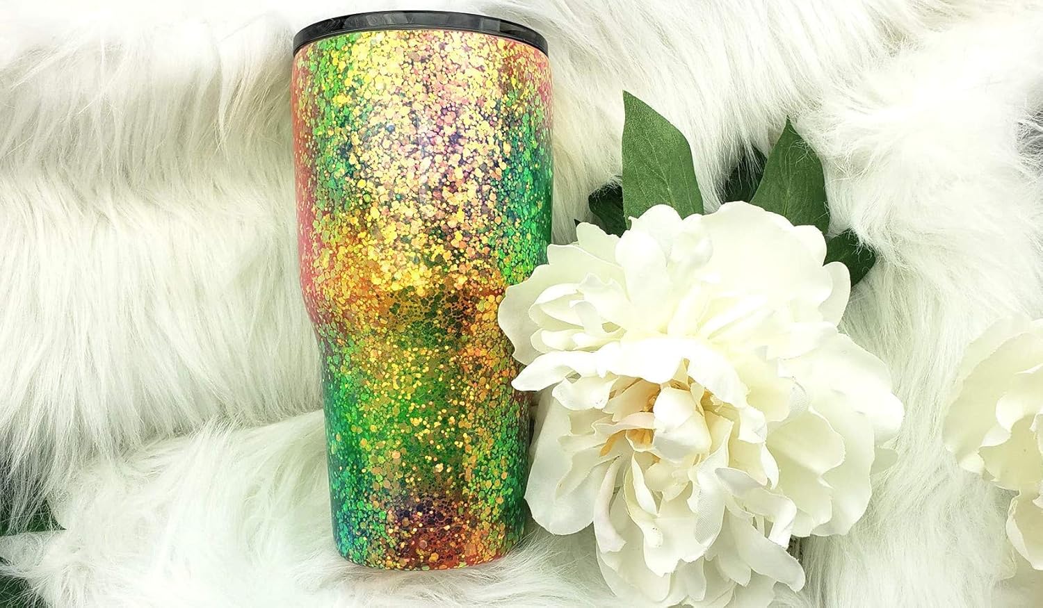 Amazon Com Rainbow Iridescent Glitter Tumbler Cup 30 Ounce Handmade