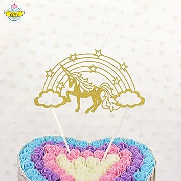 Amazon Com 2pcs Glitter Rainbow Star Unicorn Cupcake Toppers Cake