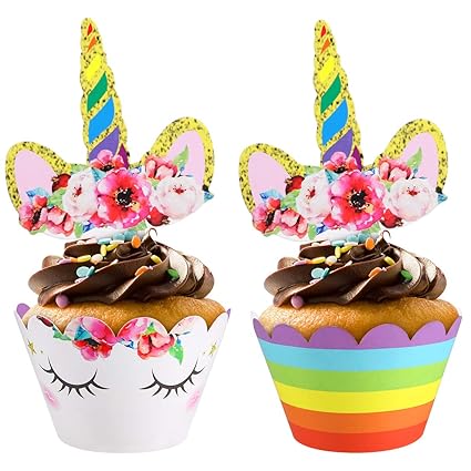 24 Pcs Unicorn Cupcake Toppers And Wrappers Set Unicorn Horn