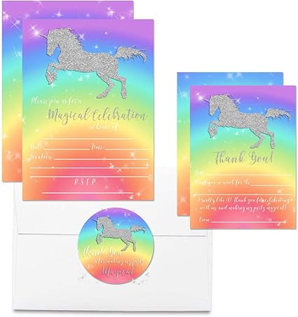 Rainbow Glitter Unicorn Thank You Cards Amanda Creation