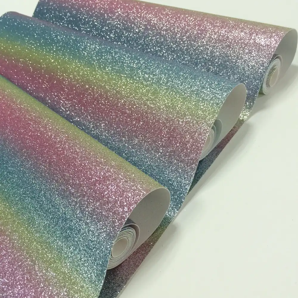 Rainbow 3d Glitter Wall Fabric Wallpaper Self Adhesive Border