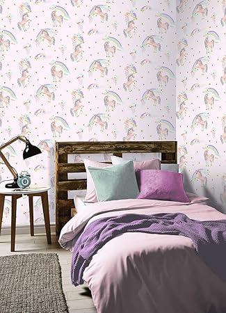 Arthouse 696108 Fill Your Kida S Bedroom With Multi Coloured Glitter Clouds And Sparkling Magical Rainbow Unicorn Wallpaper Is Available In Soft Pink And White 53 X 7 Amazon Com