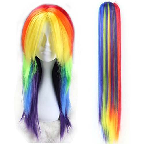 Long Fluffy Straight Hair Adult Kids Rainbow Color Cosplay Costume