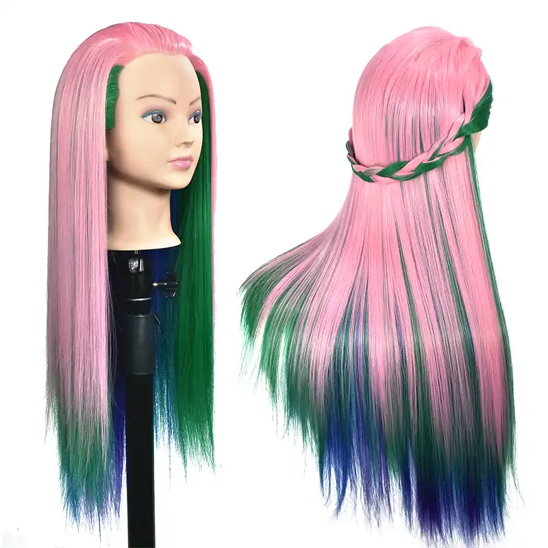 24 Hairdressing Rainbow Pink Hair Cosmetology Mannequin Head