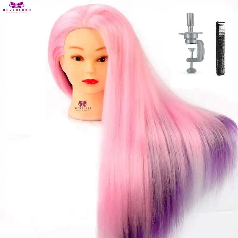 70cm Rainbow Pink Hair Cosmetology Training Head Hairdressing